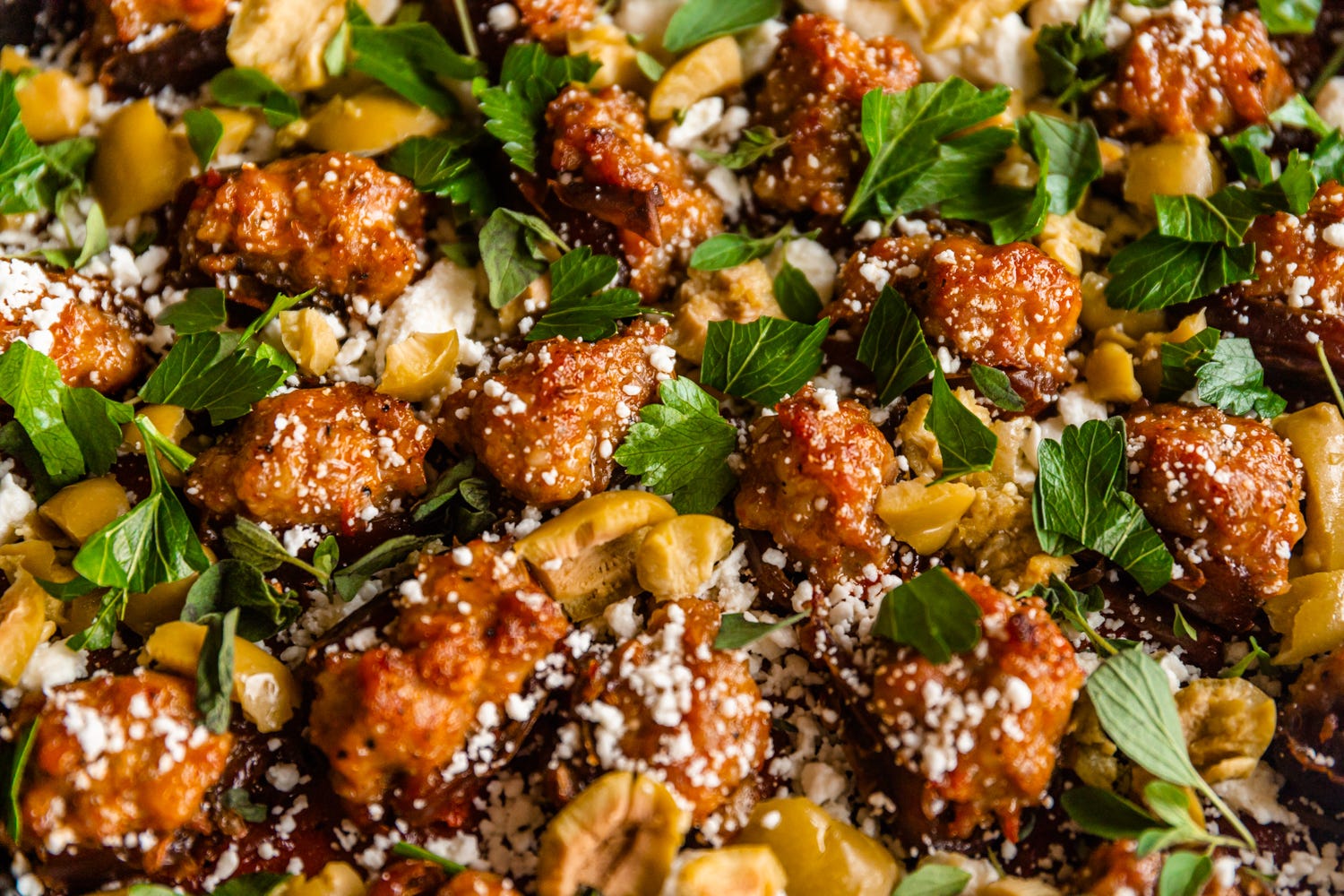 • Sausage-Stuffed Dates - swimming in warm tomato sauce and baked until bubbling and irresistible. A little sweet, a lot savory, addictively good.