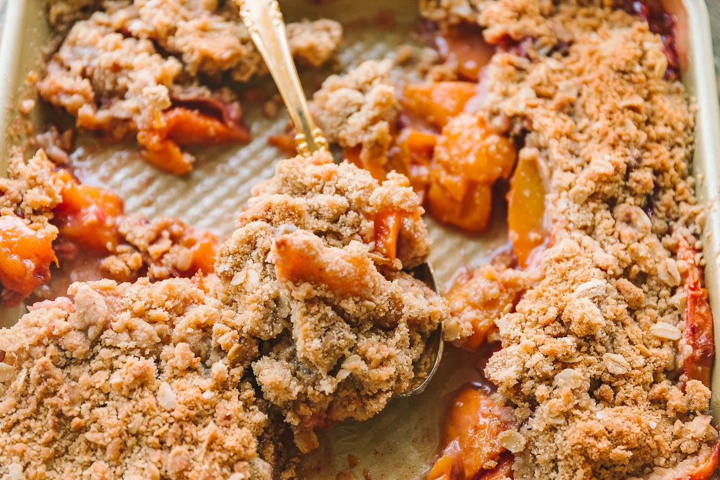 • This Summer’s Peach (or Nectarine) Crisp A sunny adaptation of the apple crisp I posted over a decade ago, this version was made for the first peaches (or nectarines!) of the season. Add a handful of raspberries if you’ve got them! This crisp is buttery crisp and sweet. We’re talking equal parts jammy fruit and oat crumble. Read: unapologetic.